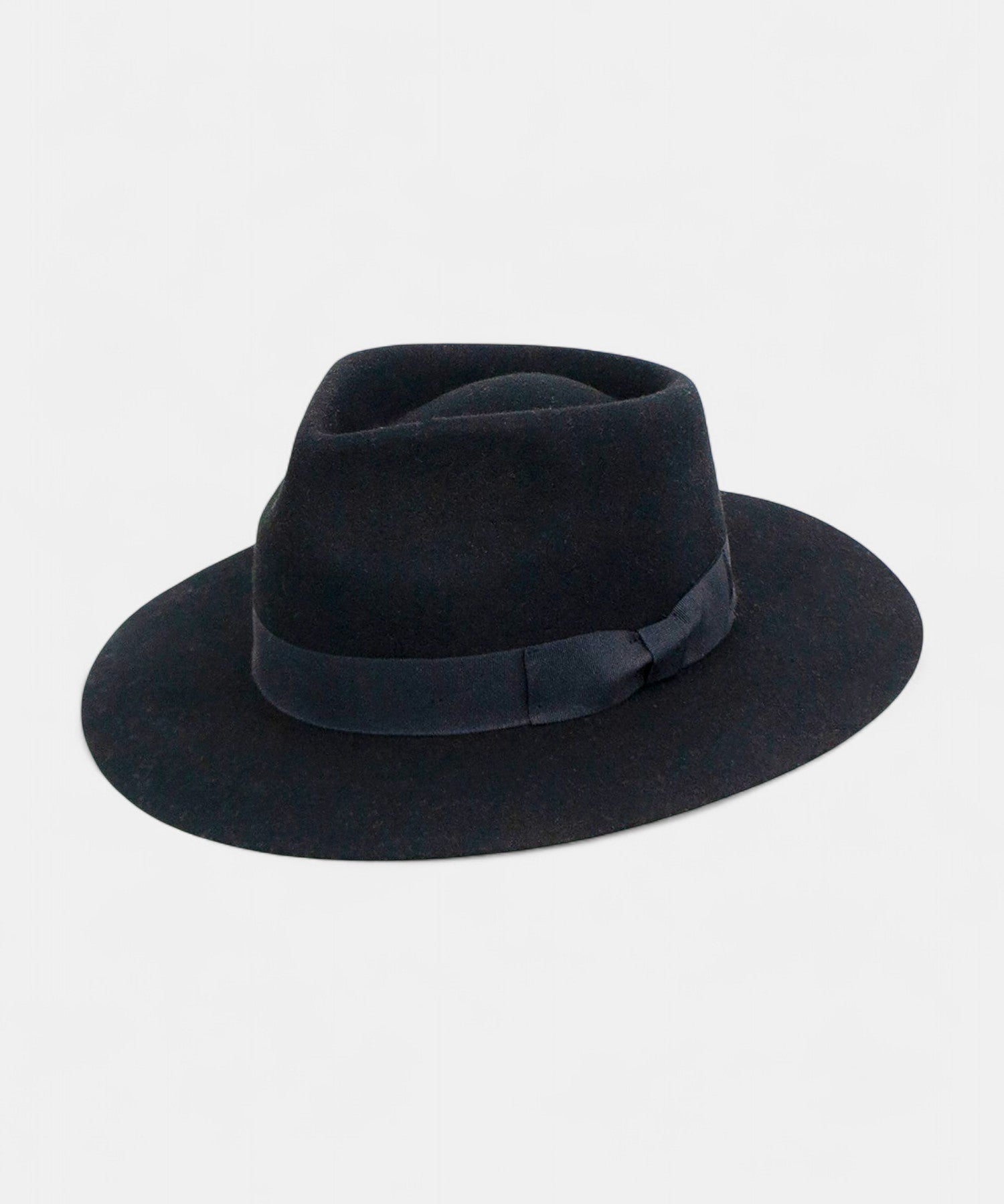 100% wool felt hat. Brim size 2.75". Grosgrain band with bow. Premium interior lining. Elasta stretch fit interior band.
