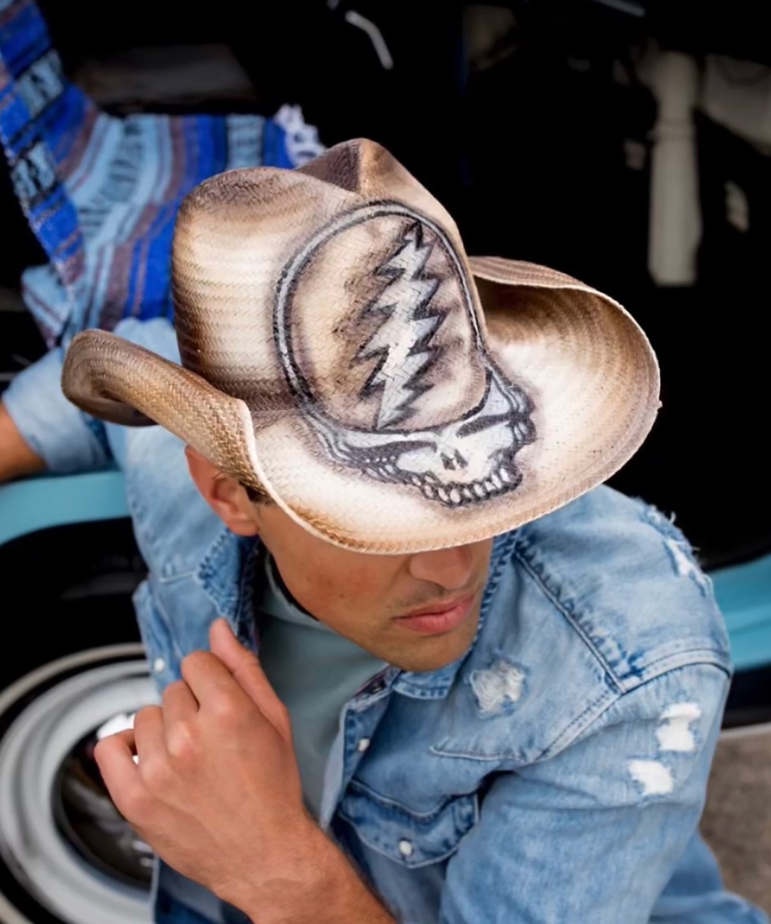 100% natural fiber. Hand painted Steal Your Face. Elasta fit band. One size fits most.