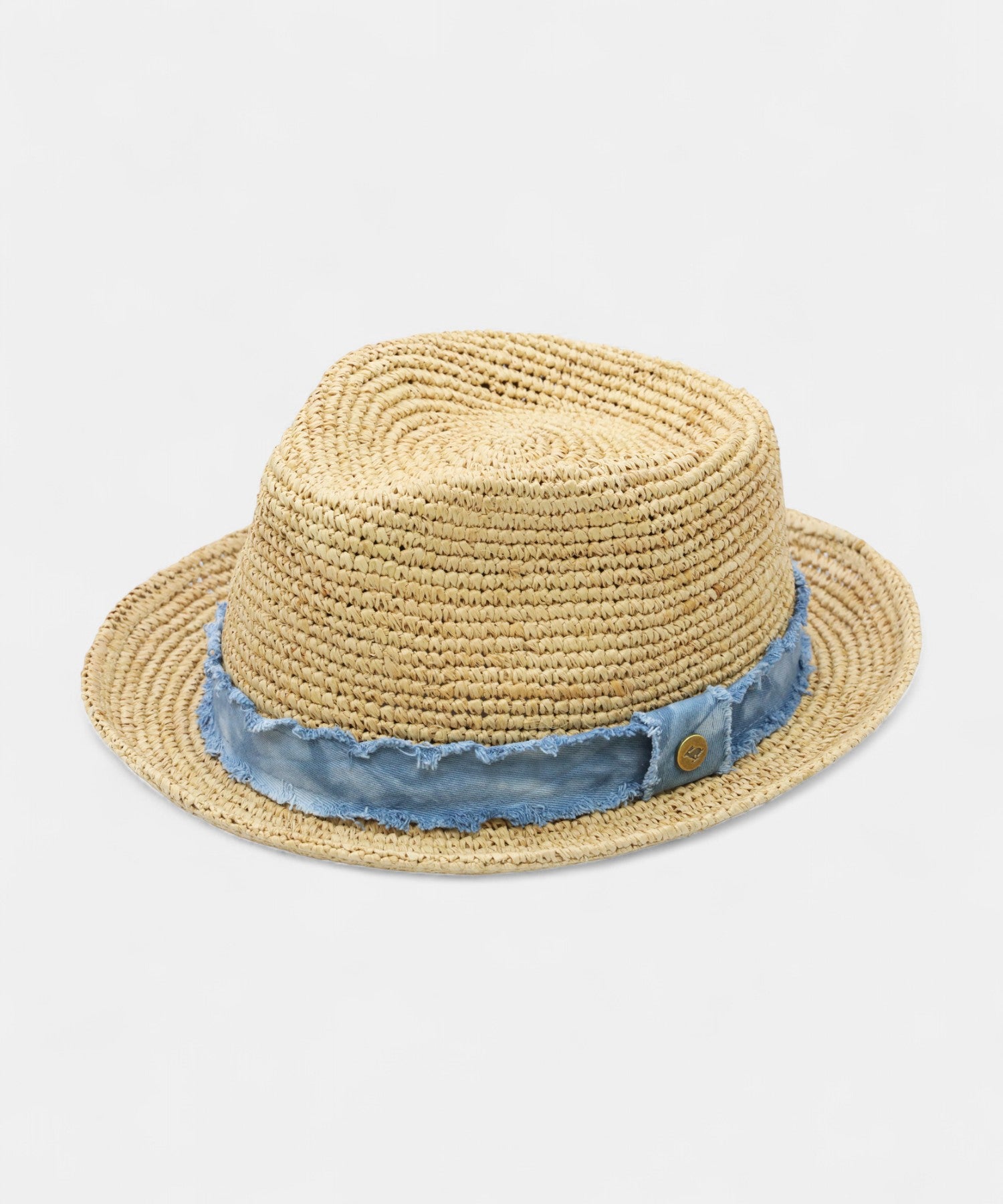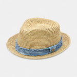 Unisex Styles, 100% Raffia, Distressed Denim Band., Brim Size: 1.75"