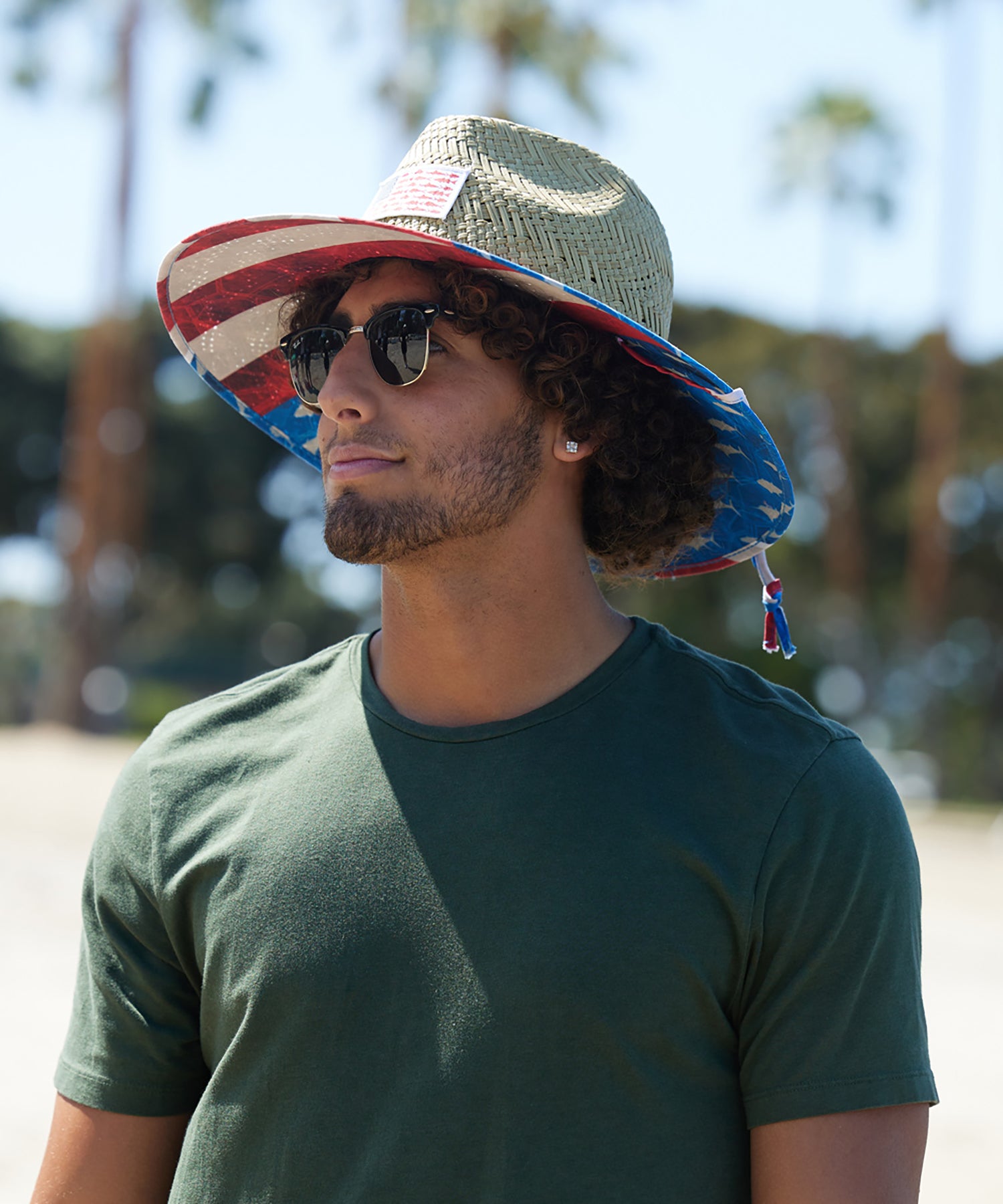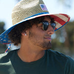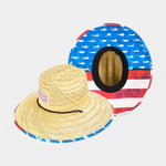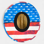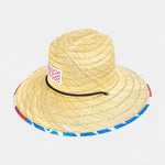 Unisex style, 100% Straw. Patrotic patch and 4.25 inch brim with chin cord.