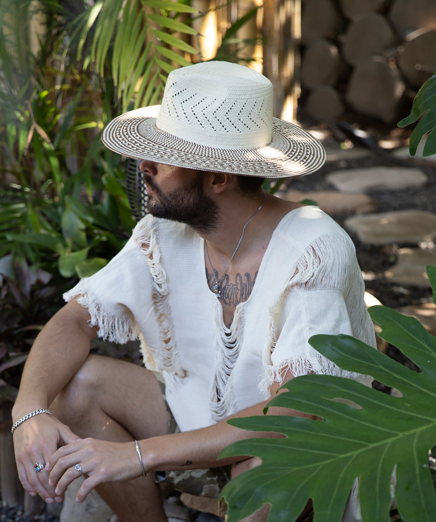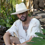 Discover your perfect summer companion with our hand-woven beige straw hat, a stylish accessory for casual or dressy occasions! The flat brim is woven with an artistic chevron and graphic design in brown, while the crown’s chevron pattern of woven cutouts offer breathability and even more punchy style. Perfect for beachy days or sunny adventures, this fashionable sun hat combines carefree vibes with on-point design. It’ll be the vivacious accessory you love to wear!