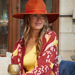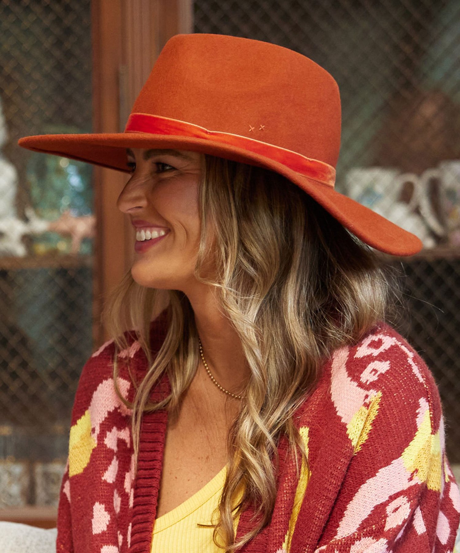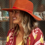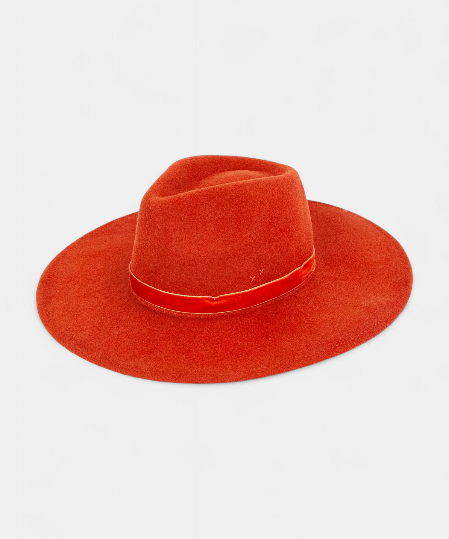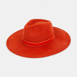 A structured 4" brim, 100% wool felt hat. Finished with a monochromatic velvet ribbon.