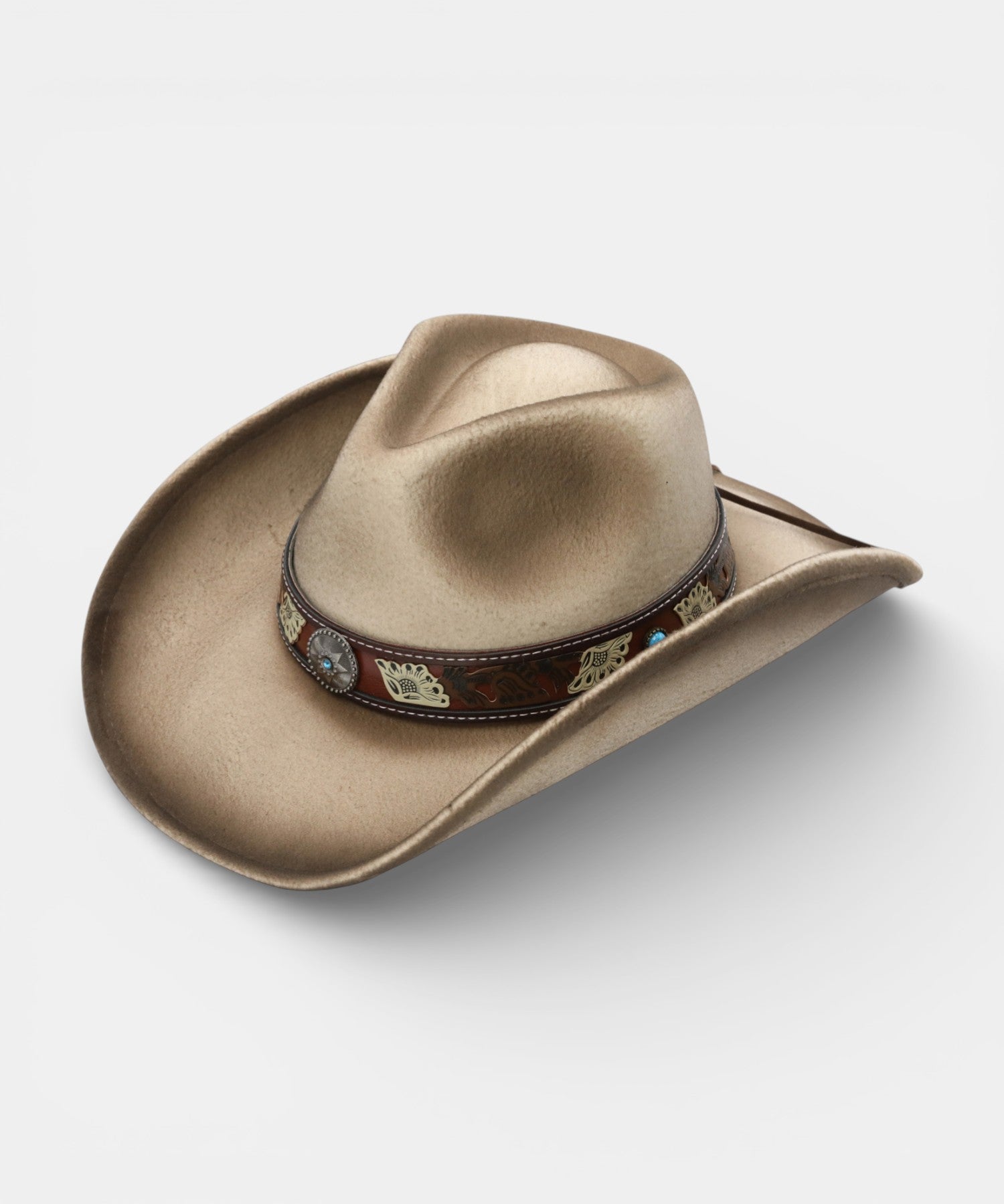 Unisex Style, 100% Ultra Vegan Felt, Artisan Band with Concho & Embroidery, Brim Size: 4"